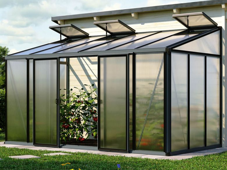 • Gewächshaus ELLA 36 in Anthrazit mit 16 mm Doppelstegplatten